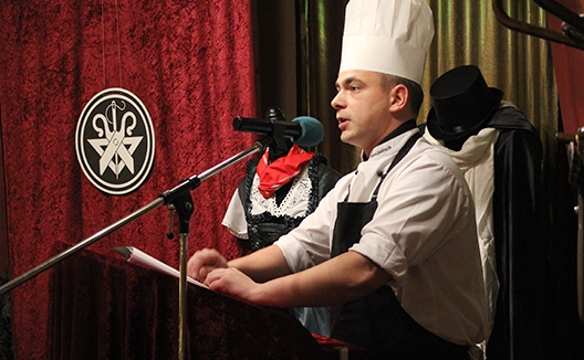 Protagonisten und jemandem, der „streng“ durch den Abend führt - ein 7-Gänge-Gourmet-Menü mit reimenden Köchen