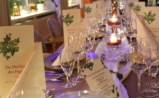 Genuss für Augen, Ohren und Gaumen bieten wir Ihnen jedes Jahr zur kalten Jahreszeit mit dem exklusiven Klüschenberg-Wintertheater: Edle Tropfen und ein 7-Gang-Gourmet-Menü, umrahmt von einer erotisch-frechen Inszenierung eines bekannten Klassikers, vom Hoteldirektor neu interpretiert und dem Restaurant-Team aufgeführt!